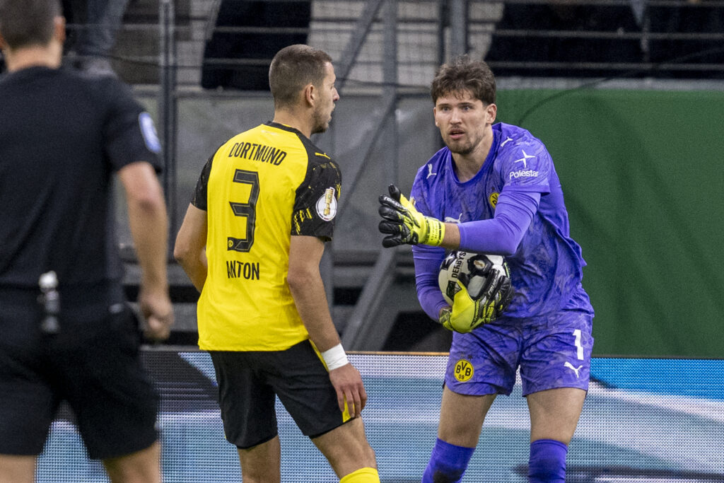 Borussia Dortmund steht im Achtelfinale des DFB-Pokals. Gegen Eintracht Frankfurt siegt der BVB mit 5:3 nach Elfmeterschießen. Die frühe SGE-Führung durch Knauff nach sieben Minuten, egalisierte Brandt kurz nach der Halbzeitpause (48.). 120 Minuten lang schenkten sich beide Teams nichts, sodass das Elfmeterschießen die Entscheidung bringen musste. Während beim BVB alle Spieler trafen, schoß Frankfurts Doan den Ball in den hessischen Abendhimmel. Und Kobel ahnte bei Chaibi die richtige Ecke.