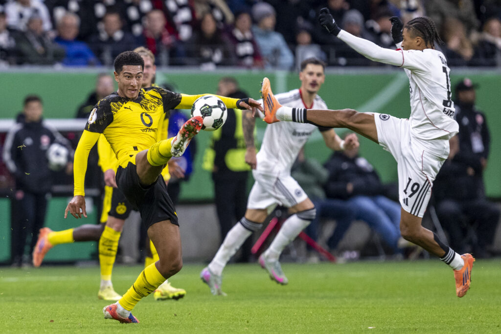Auch nach dem Rückstand war der BVB zunächst das aktivere Team, hatte viel Ballbesitz. Diesen jedoch vorrangig in der ungefährlichen Zone. Wirkliche Strafraumszenen oder gar Schüsse auf das Tor sprangen trotz der Überlegenheit im Spiel mit dem Ball nicht heraus. Nach gut 30 Minuten übernahm Frankfurt zunehmend die Spielkontrolle und kam – anders als die Dortmunder – zu Schüssen aufs Tor. Allerdings blieb Kobel im Duell mit Chaibi (35.), Doan (38.) und Theate (40.) der Sieger.