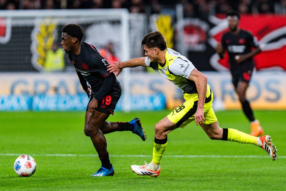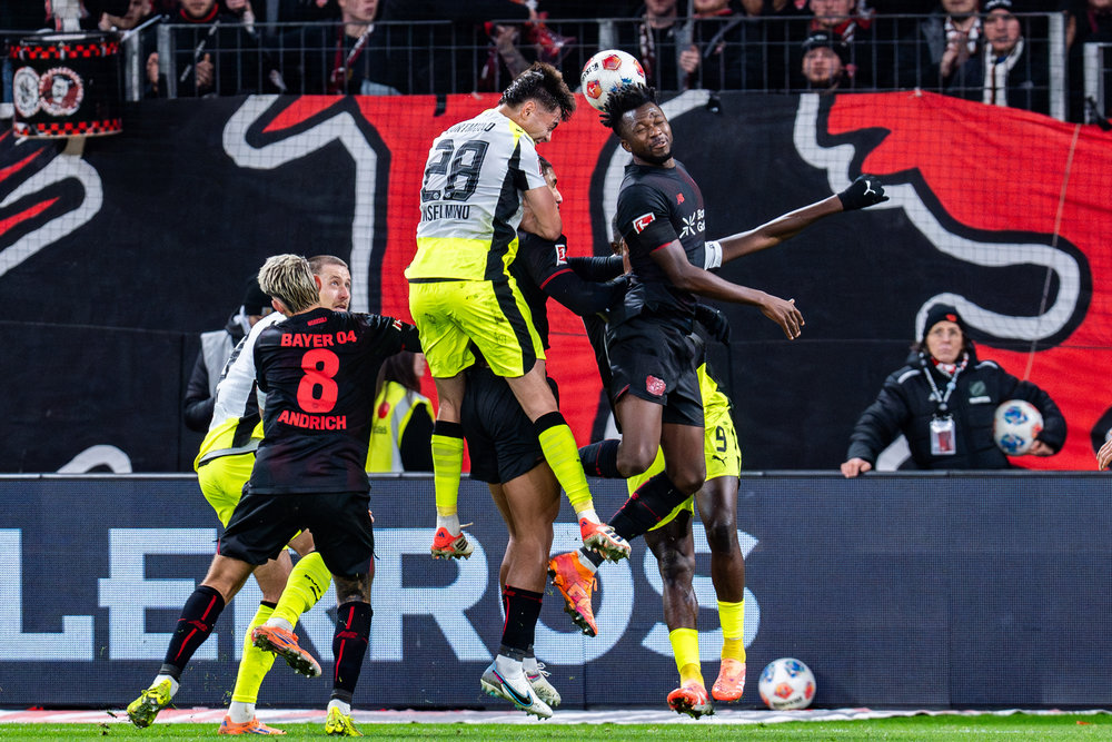 Mit einem 2:1-Auswärtssieg und zwei Kopfballtoren gelingt dem BVB der Sprung auf Rang drei in der Tabelle. Anselmino und Adeyemi trafen für die Schwarzgelben bei der Werkself.