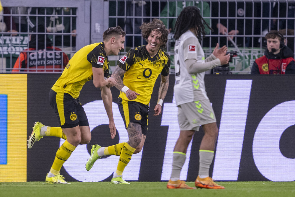Nach den ersten beiden Minuten die sich der BVB in der Hälfte des SV Werder festsetzt ist es dann erstmal die Mannschaft von der Weser die mit Kontern gefährlich nach vorne kommt und Kobel mehrfach prüft. Silva und Chukwuemeka kombinieren sich per Doppelpass durch die grünen Reihen und Silva schließt ab. Der Schuss wird aber zur Ecke abgelenkt. Den fälligen Eckstoß von Ryerson verwandelt Schlotterbeck zum 1:0 für unseren BVB.